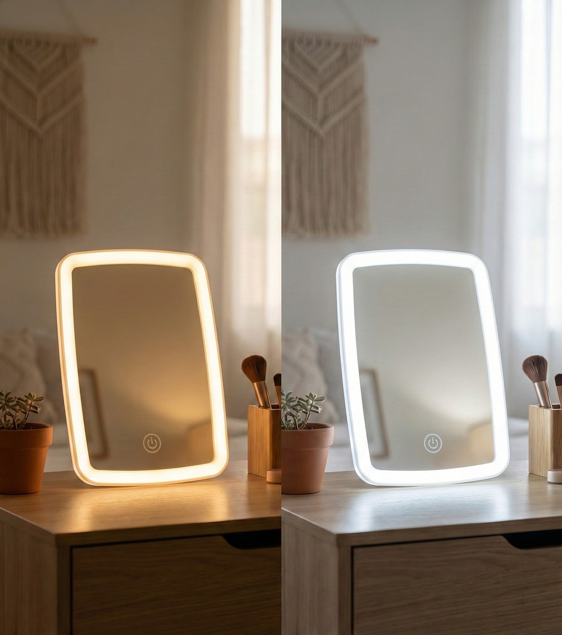 Thanks to its rechargeable 2400mAh battery, this LED mirror delivers long-lasting light without the need for constant power, making it perfect for use on your dressing table, bedroom vanity, or desk. Its adjustable angle design (30° to 100°) lets you position the mirror for ideal viewing, while the compact, portable frame fits easily in handbags or travel luggage.